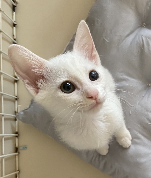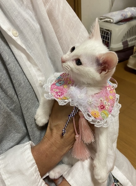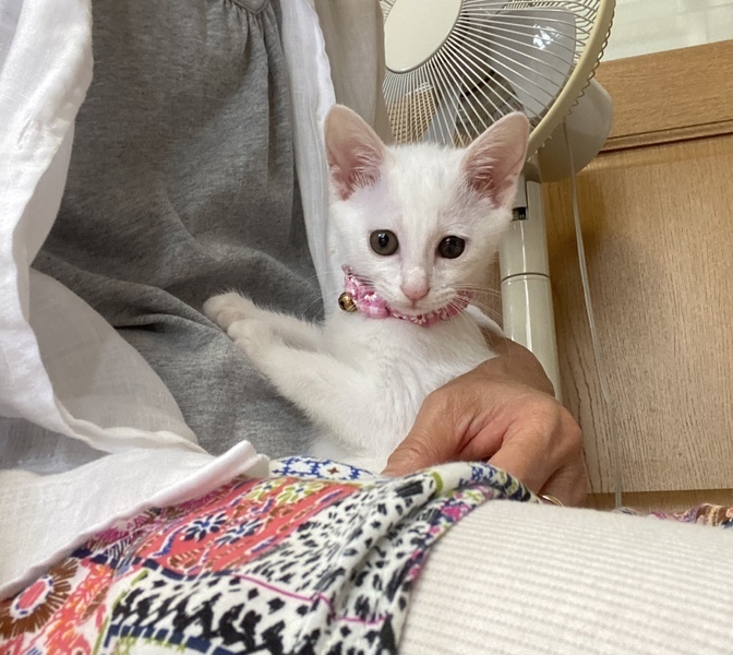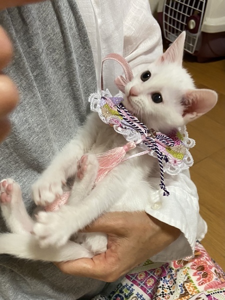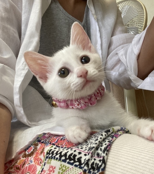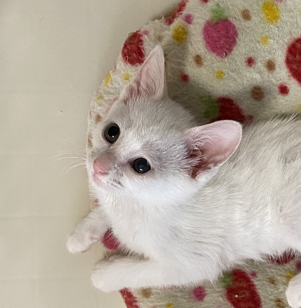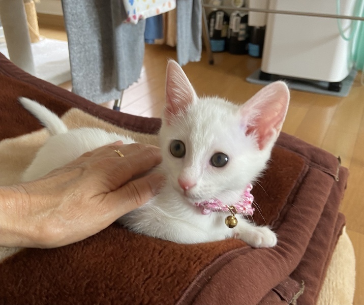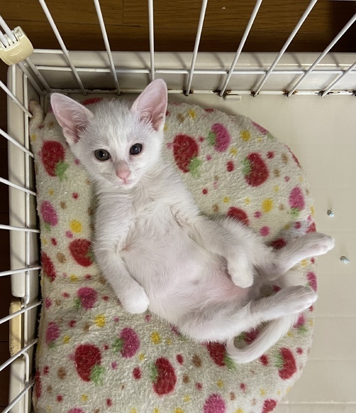 | 特徴(性格など) | 綺麗な白猫2ヶ月の女の子です。 健康状態良好、元気100% 獣医師の健康チェック済み、 風邪の治療済み 検便済み 虫下し済み レボリューション済み ワクチン接種済み 現在、カリカリにウェットを混ぜ1日3回食べさせてます。 良いウンチしてます。 ウイルス検査済み(エイズ 白血病共に陰性) もう少ししたらワクチン接種します。甘えん坊で好奇心旺盛のびびりさん。 抱っこをすると両手で頬をタッチしてきます。 トイレ失敗なし。 フード問題なし。 肉球が綺麗なピンク色でグミのような触り心地です。 |