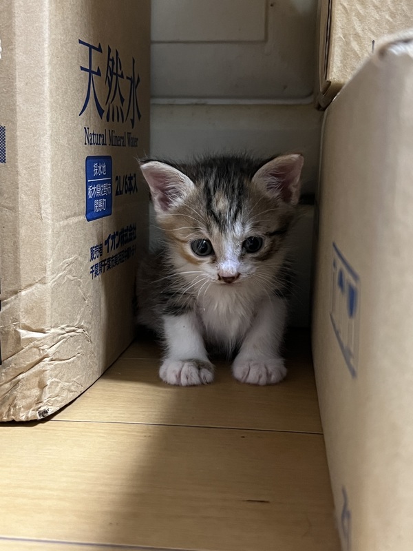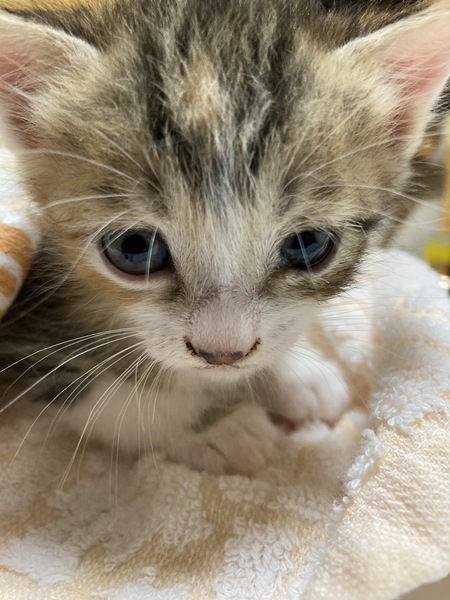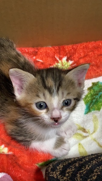 | 特徴(性格など) | 三毛猫ちゃんです。 性格は少し臆病ですが、慣れてくるとヤンチャです。 |