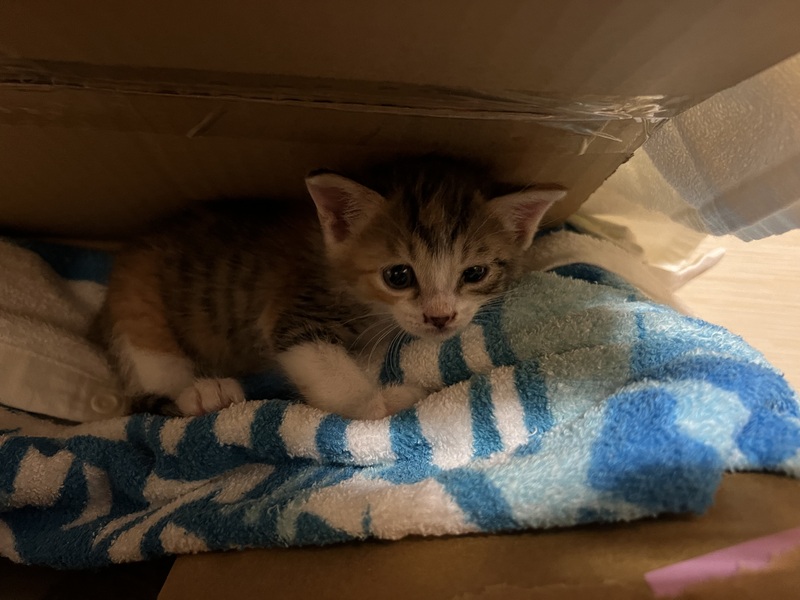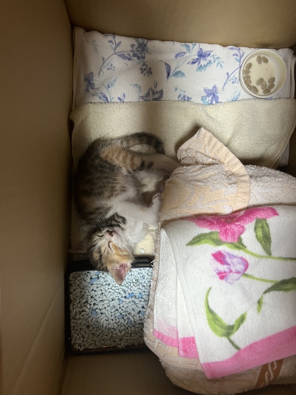 | 里親募集する理由 | 家の近所を歩いていたら子猫の鳴き声がし、母猫も来ず、見捨てる事ができなかったので保護しました。 我が家は賃貸住宅でペット不可、経済的にも余裕がないので里親を募集しました。 |