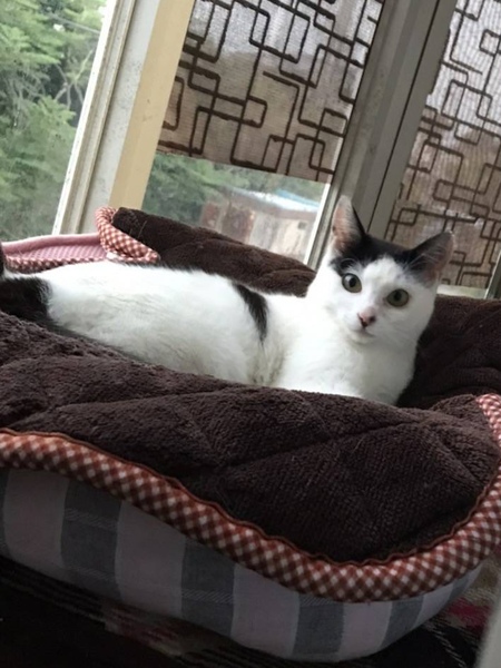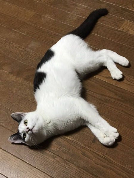 | 特徴(性格など) | 白黒ちゃんですがモーモー柄の可愛い柄の子です。 尻尾が黒です。 人間が好きで凄く慣れてます。 分からない位のサクラ耳になってます事ご承知下さい。 |