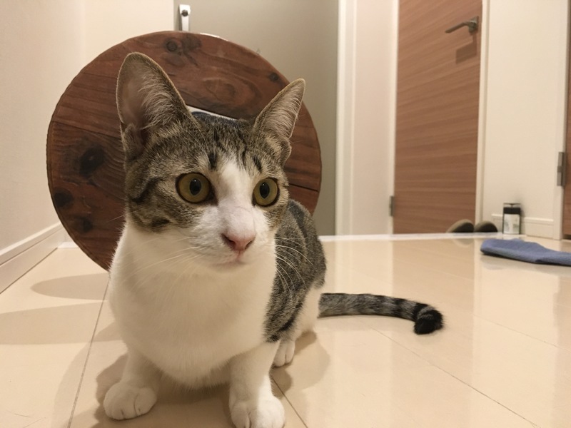 | 特徴(性格など) | キジシロ 背中に白いライン 好奇心旺盛で新しいものには真っ先に行くタイプ キュートという言葉がピッタリなかわい子ちゃん お口の匂いをチェックするのが大好き |