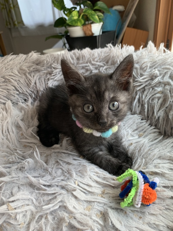 | 特徴(性格など) | お母さん猫の愛情をたっぷりと受け育ち、どこを触っても嫌がることなく、おっとりとしてとてもいい子です。 兄妹と仲良く遊ぶ姿は可愛すぎて、つい時間が経つのも忘れる時間泥棒さんです。 |