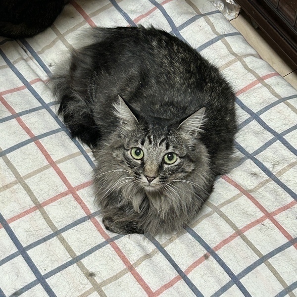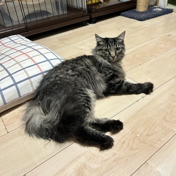 | 特徴(性格など) | 犬の捜索中に設置したカメラに映り込み、大きいお腹をしていたので捕獲されました。保護されてうちに来て、4日で出産しました。出産、子育てと頑張りました。全く人馴れしていませんでしたが、今ではナデナデされながらフミフミ、甘えん坊です。 参加譲渡会の日程・詳細は以下のリンクをご確認ください。 https://satoya-boshu.net/event/?@button_name@=search&Event_MemberID=1377 |