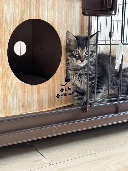 | 特徴(性格など) | 保護された妊婦猫から産まれました。4匹兄弟の中です。ママ譲りの毛足の長いキジトラ。からだは大きめですが穏やかな性格の予感がします。 お留守番が殆どないおうちを希望します。兄弟一緒のおむかえをご検討下さい。 |