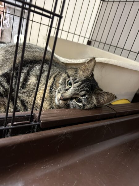 | 特徴(性格など) | 初めは全く人馴れしていませんでしたが、強い攻撃性はなく少しずつ環境に慣れ、人の存在に馴染んできました。まだ警戒しているところも有りますが、首から撫でられるのが好きで、撫でるのを止めるとパシッと手を掴まれます。穏やかで可愛らしい性格なので一匹飼いOK猫関係も良いので先住さんがいても大丈夫です。 | ||