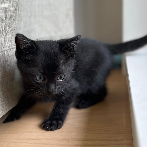 | 特徴(性格など) | 甘えん坊の黒猫男子。人見知りはせず、物怖じしない性格です。人間大好きで寝ていても人の気配がすると起きて構ってアピールをします。 他の猫にもおもちゃにも興味津々で向かっていきます。いつもニャーニャー楽しそうなので、やたくんがいると賑やかになる事は間違いありません。 特にご飯前は賑やかで、がっつき過ぎて手をお皿の中に入れてしまう事もしばしば。 人間への依存傾向があるので、やたくんの可愛さに負けず、ほどほどに甘やかしてくれるご家庭にお願いしたいと思っています。 |