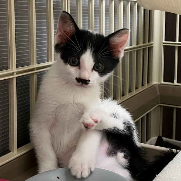 | 特徴(性格など) | 素敵なおひげがチャームポイント。兄弟の中で一番体が大きく愛嬌のある顔と人懐っこい性格をしています。 兄弟がトイレをした後は砂をかけに行き、ご飯を残したら片付けに行く、面倒見の良いお兄ちゃんです。 将来、立派な体格のおひげ紳士になっても変わらず愛情を注いでくれる里親さんにお願いしたいです。 5兄弟ですが、特に兄弟と一緒でなくても大丈夫です。みんな仲良しなので、兄弟でお迎えしたい場合もご相談下さい。 |
