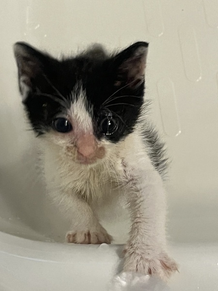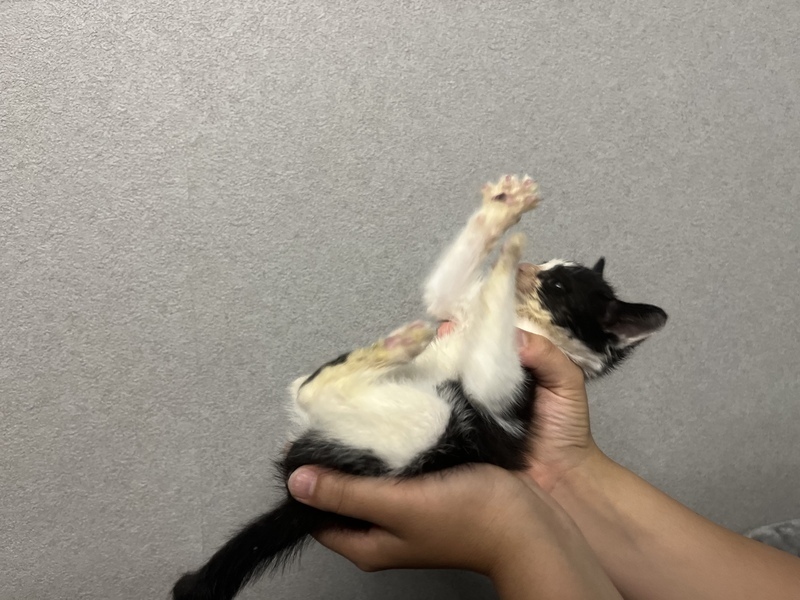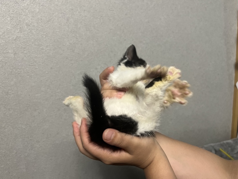 | 特徴(性格など) | ハチワレちゃんです 人に怯える様子は無いです。 道に一人でいる所を保護されました。 病気があったのであまり触れ合えていませんがものすごく元気に動き回ってます。 |
