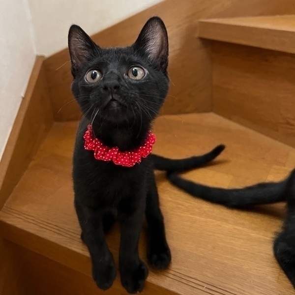 | 特徴(性格など) | ニテラちゃんはマイペースながら人間がかまいに行くと何々?お相手するわよ〜?両手をあげて戯れてくるのが可愛いです。戯れ方もソフトタッチで爪を立ず良い子ですが、にゃんプロは負けません。しつこくされたらビシッと物申すタイプです。 毛色は艶々の黒で、真っ直ぐな尻尾 兄妹のゼントくんとは全く違う性格ですが、せっかくの兄妹保護なので2匹一緒でのご縁があれば嬉しいです。 健康管理をしっかりしてくださる方、また安全に暮らせる様にお部屋のお片付け、目に見える形での脱走防止対策を徹底してくださる方希望です。脱走防止対策についてはご自宅の玄関・開ける窓・ケージを置くお部屋などのお写真をご持参いただくとスムーズにお話ができるかと思います。 |
