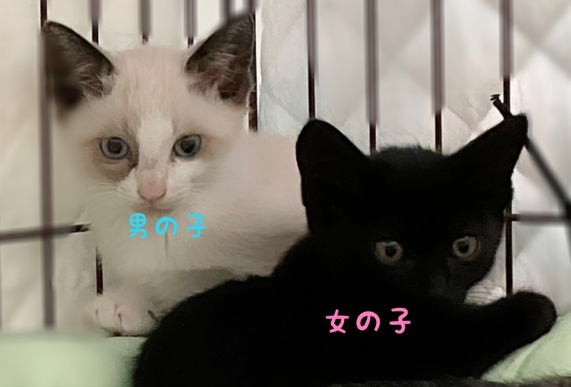| 特徴(性格など) | 【代理投稿です】 ♡ラグドール風♂ 綺麗なブルーの目を した?顔のラグドール 風男の子 ビビリで黒ちゃんが お手本.支えになってます ♡黒♀ つぶらな瞳の艶黒 女の子 少し抱っこ出来 オモチャ大好き カリカリの後チュール を要求♡ 出勤前に甘えなきをする 御利口さんで あざと可愛い女の子です。 1番可愛い時期です 兄妹の可愛いとこ 見つけてあげて下さい。 |