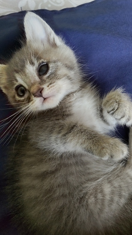| 特徴(性格など) | サバトラ猫でとても可愛い子です 猫風邪の影響で 左目に白濁が見られますが 生活に支障はなく 食欲もあり 元気で活発です やや臆病な所もありますが とてもフレンドリーな子です |