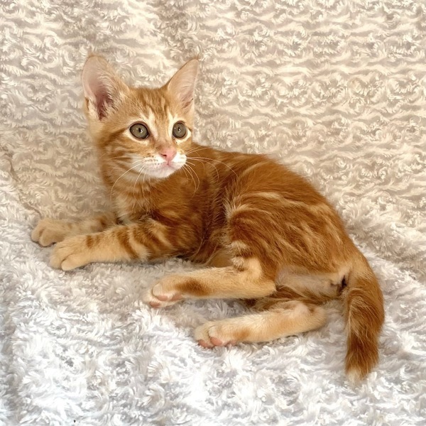 | 特徴(性格など) | 【仮名】藍染ちゃん(あいぜん) 【性格】レッドタビーの藍染ちゃん♪ シッポが独特でピ〇チューみたいに ジグザグの稲妻になってます♪ このコは特に性格良いです♪ 人馴れもバッチリで愛嬌もあり甘え上手でネコにも温厚♪ まさにジャパンブルーで人々に愛された 藍染めの名に相応しいにゃんこです♪ みんなで遊ぶのが大好きなので兄妹or同世代にゃんことのペアでの お申込をお願い致します♪ ※1ピキ譲渡応相談 (先住アリの場合のみ) |