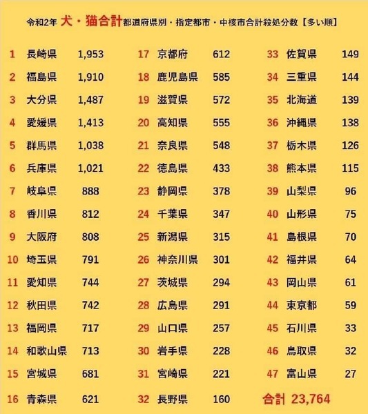 | その他(譲渡条件など) | ◆引き渡し方法について&アンケート どうか温かい手を差し伸べて下さい。 尊い命です。 ⭐️直接のお迎えが難しい場合や県外、遠方でも、譲渡の条件が合い、良縁に恵まれましたら引き出しや空輸、搬送など出来る限りの範囲内になりますがボランティアがお手伝いさせて頂きます。ご相談下さいませ! ⭐︎ご本人様確認の為身分証明書と、飼育環境の確認が必要となりますm(_ _)m ⭐️ご応募〜譲渡までの流れ⭐️ 【①〜⑱アンケートにご回答】 ⬇ 【お名前、ご連絡先のご提示】 ⬇ ※ボランティアからお電話で譲渡誓約書や譲渡後のお願いやお約束事等について確認、お話をさせていただきます(^^) ⬇ 【身分証明書、飼育環境写真のご提示】 ⬇ 【管理所職員の方と面会かお電話で講習、意思・条件などの最終確認】 ⬇ 【引き渡し】 ※搬送やお迎え時にはエアトラベルキャリーケースかケージが必要になります。 搬送交通費、キャリーは里親様ご負担となりますm(_ _)m (キャリーはレンタルも可能です。後日返送して頂きます) ※譲渡後の幸せを真剣に願い、アンケートをお願いしております。 ↓お問い合わせ時にコピーペースト、もしくは番号順に箇条書きでも構いません。お手数ですが宜しくお願い致しますm(_ _)m お答え頂けない方、アンケート内容が曖昧な方ですと、譲渡のお話を進めていく事が出来ない為、お返事は致しかねますので予めご了承くださいませ。↓ ⭐️⭐️⭐️⭐️⭐️⭐️⭐️⭐️⭐️⭐️⭐️⭐️⭐️⭐️⭐️ ↓↓↓↓↓↓↓↓↓↓↓↓↓↓↓↓↓↓↓↓ ⭐️⭐️⭐️⭐️⭐️⭐️⭐️⭐️⭐️⭐️⭐️⭐️⭐️⭐️⭐️ ①-----どちらに(○県○市)お住まいですか? ②----- ペットの飼育経験はありますか? (種類、飼っていた時期など) ③----- 先住ペットの有無とその性別・年齢・性格を教えてください。 又、去勢、避妊手術はお済みですか? お済みでない場合はその理由を教えてください。 (不妊手術にご了承いただける方のみとなります) ④-----先住動物と相性が悪かった場合はどうしますか? ⑤-----御自宅は持ち家、賃貸のどちらになりますか? 賃貸の場合ペット可の証明書が必要となりますのでご用意、ご提示をお願い致します。 ⑥-----完全室内フリー飼育は可能ですか? 室内飼育以外の方はご遠慮ください。 ⑦----- 動物と一緒に暮らすご家族、ご本人のご年齢と、ご職業 を教えてください。 ⑧-----この子を主にお世話する方はどなたになりますか? ⑨----- お留守番の平均時間はどの程度ですか? ⑩-----旅行など長期にわたって家を留守にする場合、猫をどうされますか? ⑪-----安価で粗悪なフードを避け、良質なフードやプレミアムフードで猫の健康に気を付けて頂けますか? ⑫----- 万全な脱走防止対策、首輪に迷子札装着もしくはマイクロチップをお願いしておりますがご了承いただけますか? ⑬-----譲渡後、混合ワクチン等の健康管理、去勢手術を必ずして頂けますか? 後日、去勢手術証明書、ワクチン証明書を郵送もしくは写真(LINEやメール)で拝見させて頂いておりますm(_ _)m ⑭-----最寄りの動物病院について把握していますか? ⑮-----現在、動物のために用意しているものはありますか?(2段か3段ケージ、キャットタワー、トイレなど) ⑯-----万が一病気や皮膚疾患などがあった際には速やかに惜しみなくきちんと治療し、健康管理をして頂けますか? ⑰-----もし今後、自分や同居人が新たにアレルギーを発症したり、結婚や出産などで増えた家族がアレルギーだった場合、 迎え入れたペットがどうしても飼えなくなった場合にはどうなさいますか? ⑱----- 数ある里親募集の中からこの子を希望して下さった動機と、終生愛情と責任を持って育てる覚悟を掲載者に伝えてください。 《その他質問など》 ----- ----- ----- ----- ----- ----- ----- ----- ----- ♦︎その他・備考♦︎ ※猫ちゃんを迎え入れる事にご家族皆様の賛同を得られている方。 ☆これからの長い年月を家族の一員として共に暮らし、生きていく事になります。 里親様が選んだこの子には里親様しか居ません。 もしかしたら何か病気があるのか?無いのかも分かりません。 何があっても、手放さずに大切に飼養していけますか? 御家族とよく相談されてからのお問い合わせをお願い申し上げますm(_ _)m ☆申し訳ございませんが無職、未成年者、65歳以上の方、単身者、妊娠中の方、未婚のカップル、お若いご夫婦の応募は受付しておりません。 60代の方は猫の為に、万が一の飼育困難時には、飼い主同様に猫をきちんと受け入れて終生愛情を持って大切に飼養して下さるご親族やご友人など後継人がいらっしゃる方 となります。 ※その際は後継人さんの身分証明書、誓約書も必要となります。 持ち家、ペット可物件にお住まいの方。 ※賃貸物件の場合、ペット可の証明書が必須となりますので忘れずにご用意をお願い致します。 必要な医療にかけて下さる方。 病気や皮膚疾患があった際には速やかに惜しみなくきちんと治療し、健