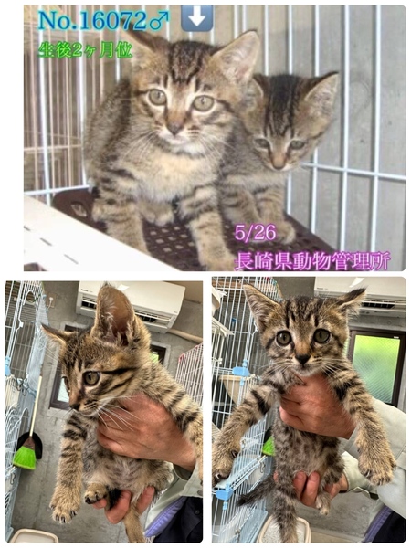 | 特徴(性格など) | ご覧いただきありがとうございます!! ⭐【 ①〜⑰のアンケート】にお答え頂けない方、アンケート内容が曖昧な方は、譲渡のお話を進めていけない為、お返事は致しかねますので予めご了承くださいませ↓ ♡人懐こくて元気いっぱい、スリゴロの可愛いちびっ子きょうだい3匹です(^^) (4匹で保護され、1匹は里親様が決まり譲渡になりました) 収容当初は痩せて栄養状態も良くありませんでしたが段々と改善されてきており、活発に遊ぶようになってきました(^^) 猫砂でのトイレも出来ています。 この子達ならきっとじきに新しい家庭に馴染んでいけると思います。 ♡No.16071 キジ女の子 ♡No.16072 キジ男の子 ♡No.16073 キジ男の子 ⭐️完全室内飼育で、譲渡後速やかに病院受診、健康診断、混合ワクチン、生後4〜6ヶ月を目処に不妊手術をする事が可能な、なるべくお留守番の少ない沢山優しく触れ合っていただけるご家庭。 ⭐️新しい環境に慣れるまで、もしかしたらトイレの失敗などあるかもしれませんが覚悟と根気・理解で受け入れて下さる方m(_ _)m ※混合ワクチン、ウイルス検査実績はありません。エイズや白血病陽性等の可能性も0では無くあり得ることとなります(>_<) 以上の点を踏まえ、この子達の置かれている状況、寂しくて不安もいっぱいであろう心をご理解のうえ、全て受け入れ寄り添っていただけるご家庭で終生可愛がっていただきたいと祈っております。 収容された全ての子達は、身勝手な人間による被害者であり、何も悪くありません( ; ; ) 家族の一員として生涯大切にしてくださる優しいご家庭とのご縁が結ばれ幸せになれます様にm(_ _)m ☆⭐︎ 家族を必要としています。 のびのびと遊んだり、抱っこされてスリスリ目一杯甘えたりさせてあげたいです。 人間よりはるかに短い生涯です。元気に幸せに生きてほしいです。 この子達にどうか温かい手を差し伸べて下さい。 安心出来る、愛してくれる温かい家庭、当たり前の幸せを知ってほしいです。 まだまだこれからの命を、絶対に幸せに過ごしてほしいと願っています! どうか宜しくお願い致します。本当本物の家族になっていただけませんか。 ご連絡をお待ちしております♡♡ ◆健康状態 今のところ元気にしていて成長期用ドライフードを食べられるようになってきました。 ※管理所では収容するのみ になり、健康診断やウイルス検査、ワクチンなどは一切行っておらず、トライアル制度もございません。 何か病気があるのか、無いのかも分かりません。 ※一度引き出して検査だけをする事も出来ませんm(_ _)m この子達の全てを丸ごと受け止め、 終生愛情飼養で迎えて下さる方のみ への譲渡となります事をご理解、ご了承くださいませ。 収容動物の健康面の保証はございませんのでお迎え後は直ぐに病院でメディカルチェック、混合ワクチン、生後4〜6ヶ月を目処に不妊手術を確実にお願い致します。 ※去勢、避妊手術は長崎県動物管理所より譲渡条件の1つになりますが、何らかの疾患が見つかり治療が優先→不妊手術が延期、又は避けるとなった場合には年齢・健康状態を考慮の上獣医師の判断を仰ぎ、ご報告を頂いております。 混合ワクチン接種も同様となりますm(_ _)m (その際の診断書を写真、もしくは郵送にてご提示して頂いております。) また、例えどんな病があろうとも最期まで責任を持って家族として迎えて下さる覚悟のある方でないと、保健所収容されている犬猫ちゃんの迎え入れは難しいです。。 何卒ご了承くださいませm(_ _)m ★逸走、脱走にはくれぐれもご注意願いますm(_ _)m 交通事故等、命に関わります! 病院へは必ずキャリーに入れて連れて行ってください。 ☆ノミマダニ駆除のフロントラインスプレー済みです。 ☆ コクシジウム駆虫薬のプロコックス投与済みです。 ◆混合ワクチン接種、不妊手術の有無 未接種 未去勢、未避妊(必ず不妊手術をする事をお約束頂いております) |