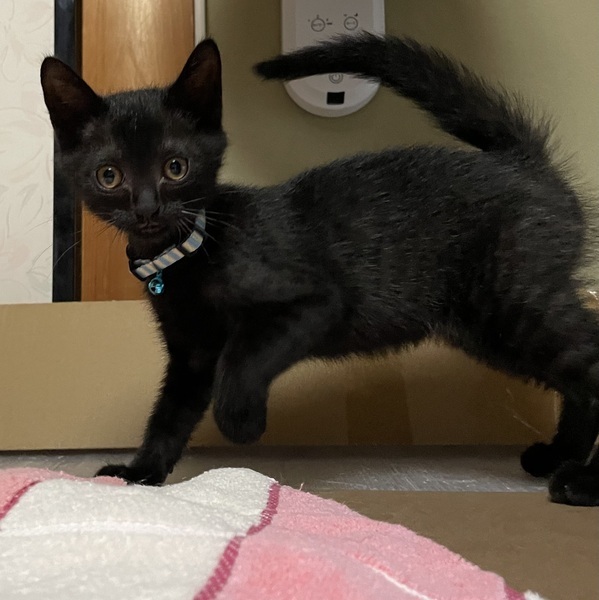 | 特徴(性格など) | 保護時は、シャム系の毛色でしたが、成長と共に黒色で縞模様があり、内毛は白という感じに変わっていきました。 フィーバーコードという現象です。 ミルクちゃんから育てたため、人慣れしています。 ゴロゴロですぐ膝の上に乗ってきます。 エイズ・白血病、共に陰性 |
