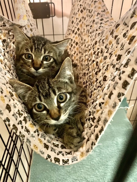 | 特徴(性格など) | ※4匹の内、2匹はトライアルや里親が決定しておりますので、残り2匹の募集となります。 6/18に保護したばかりのキジトラ姉妹です。 色柄:キジトラ 体重:800g~850g 保護したばかりで、まだシャーフーと怯えていますが、直ぐに馴れると思います。 保護時はちょっと痩せ気味でしたが、食欲旺盛でみんなカリカリを良く食べています。 ↓ 【更新】 ・2023年6月27日 保護して約一週間が経過しました。最初は怯えてシャーフー空気砲を連発していましたが、 あっという間に馴れて、今は手からチュールを舐めたり、おもちゃに興味深々です! ・2023年7月9日 動画と写真の一部を差し替えました! そっくり姉妹なので見分け方が難しいですが、 少しおっとりしているのがマルちゃん ツンデレちゃんがパンちゃんという仮名になりました。 写真1枚目のにゃんモックにいるのがマルちゃんとパンちゃん 動画の最初でチュールを舐めているのがパンちゃんです。 二匹共、にゃんモックとおもちゃがお気に入りのようです。 |