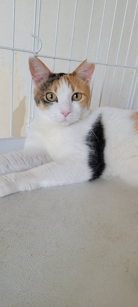 | 特徴(性格など) | ミッケ♀推定8歳~の三毛猫の女の子です。とても可愛いらしい顔をしています。人馴れもしていてスリスリゴロゴロの甘えん坊さんです。少しおトイレが苦手でトイレじゃない所でオシッコをする事があります。ですのでできれば単頭飼いの方、トイレが苦手でも大丈夫という方にお願いしたいと思います。是非一度ルームに会いに来て下さい。 猫エイズ(-) 白血病(-) |