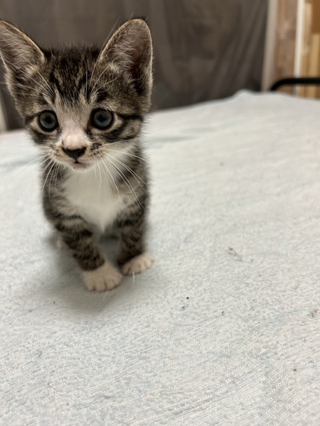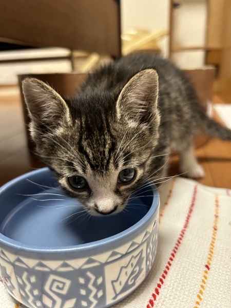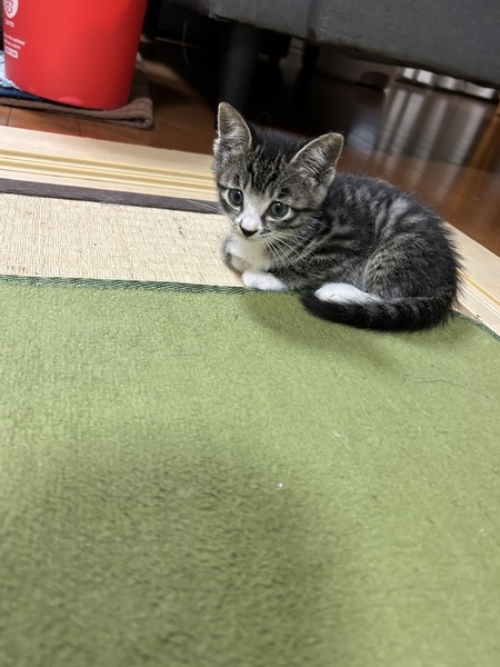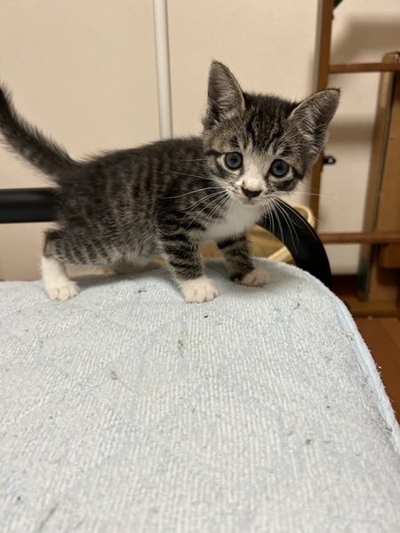 | 特徴(性格など) | キジトラお腹と足先が白いです。 おっとりしています。元気いっぱいです。 |