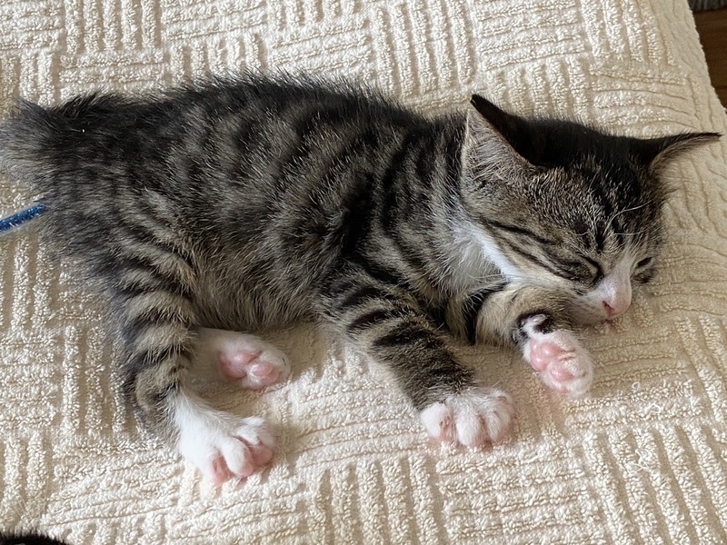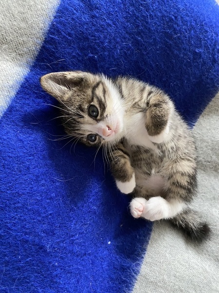 | 特徴(性格など) | キジトラえお腹と足先白いです。かぎしっぽです。 とってもやんちゃで、元気いっぱいです。 |