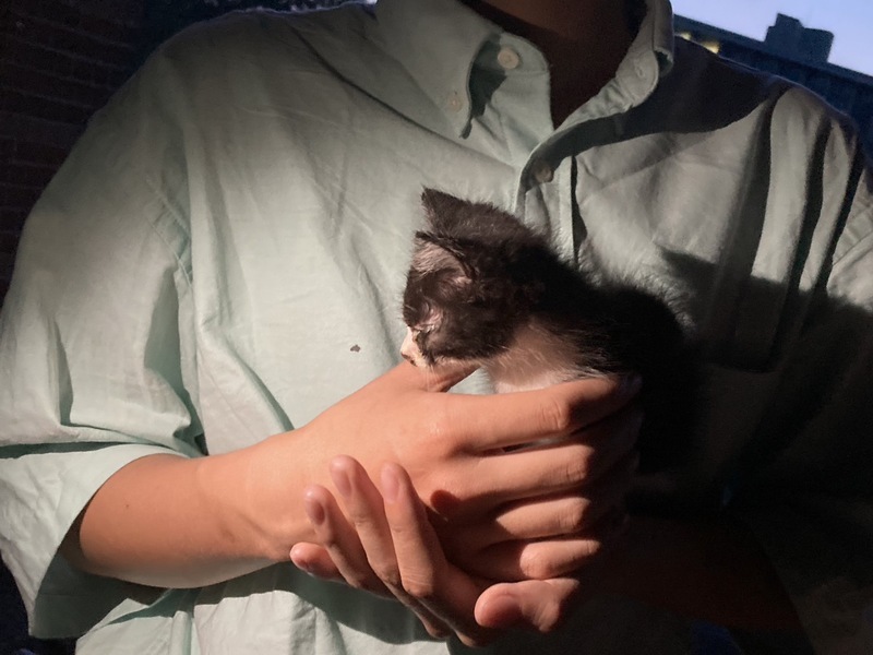 | 特徴(性格など) | 名前はおにぎり君です! 鼻にある髭のような黒模様が特徴です! 動物病院に連れて行ってからは元気に走り回ってます! 現在はサークルメンバーのみんなで面倒を見ていますがかなり人懐っこいです! |