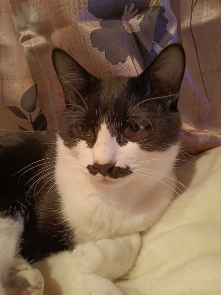 | 特徴(性格など) | 白、黒 (ハチワレ) |