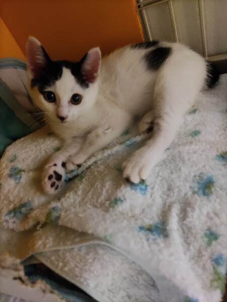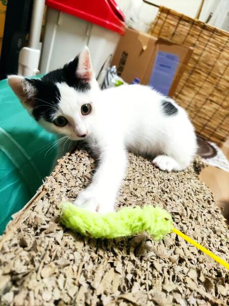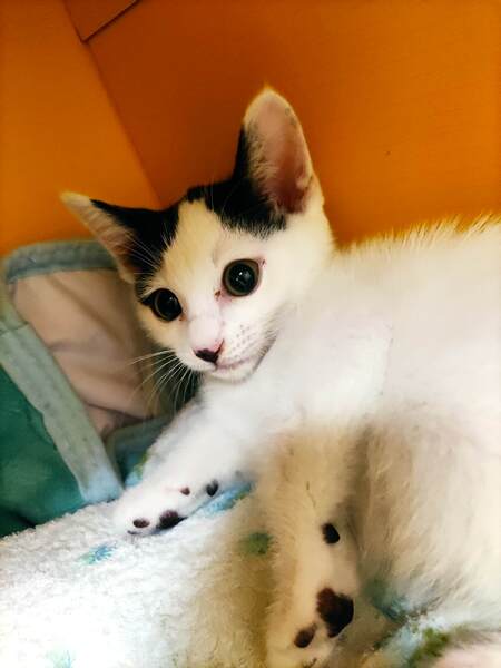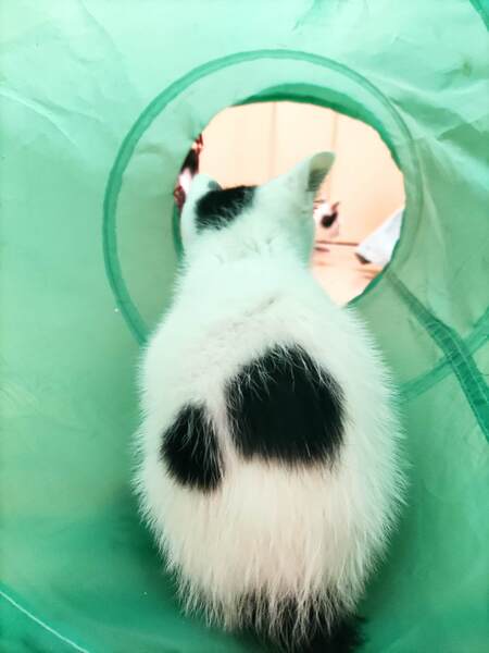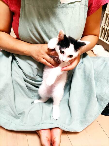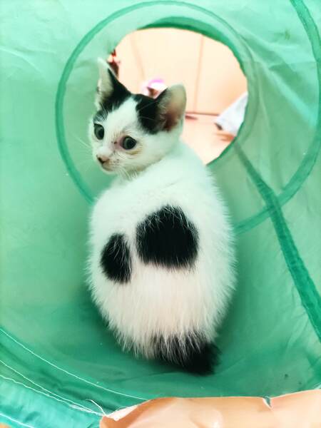 | 特徴(性格など) | 血液検査陰性 レボリューション滴下済み (ノミ、ダニ、回虫駆除薬) よく食べ元気です。 姉妹の黒ちゃんの後ろに隠れる感じです(笑)おもちゃでよく遊びます。尻尾がウサギの尻尾みたいに短くとても可愛いです。天使の羽ブチ(ズレてます残念(笑)) 先に里子に出た姉妹が居なくなってから、ずっと一匹で過ごしています。 本領発揮していないだけかもしれませんが、活発すぎるという感じではないです。 パウチと最近ドライフードを食べるようになりました。 トイレは失敗無しです。 |