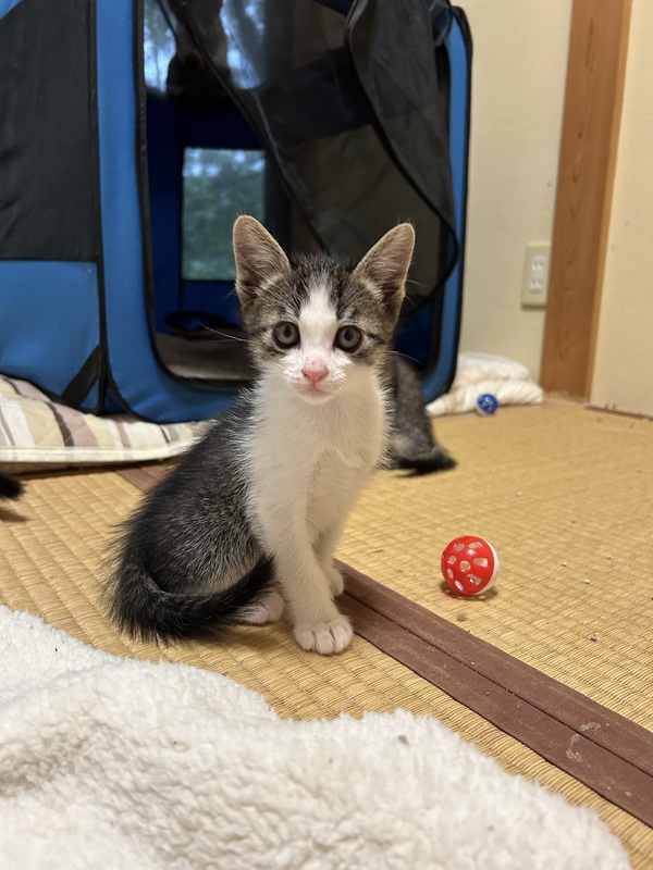 | 特徴(性格など) | キジ白のわんぱくな男の子です。 遊ぶ事が大好きな元気な子です。 |