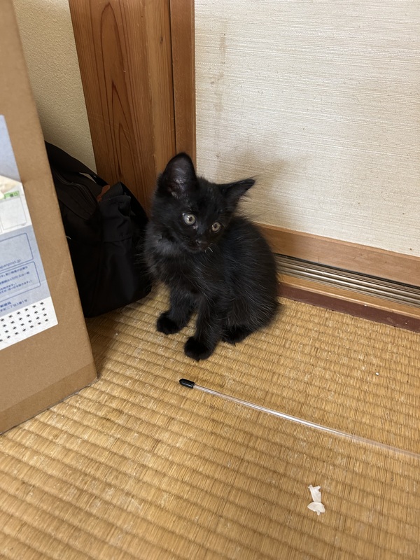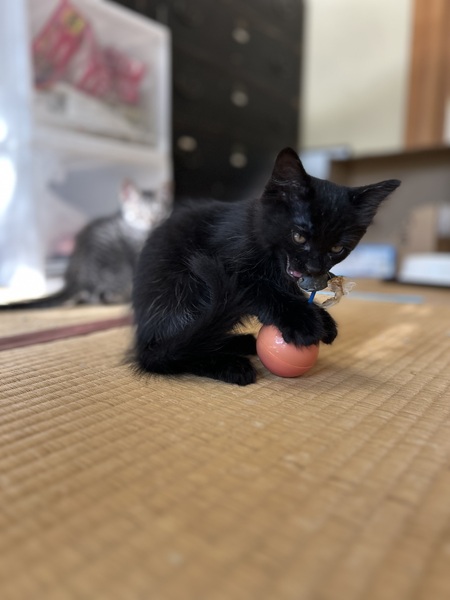 | 特徴(性格など) | 真っ黒の男の子です。 他の兄妹達と比べて少し毛足が長いです。 |