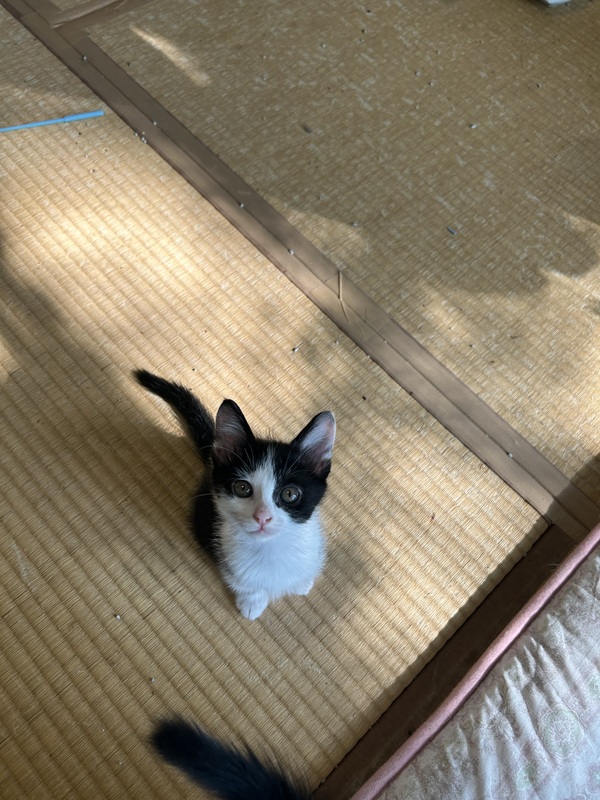 | 特徴(性格など) | ハチワレの女の子です お転婆で、兄妹達と良く遊びます。 |
