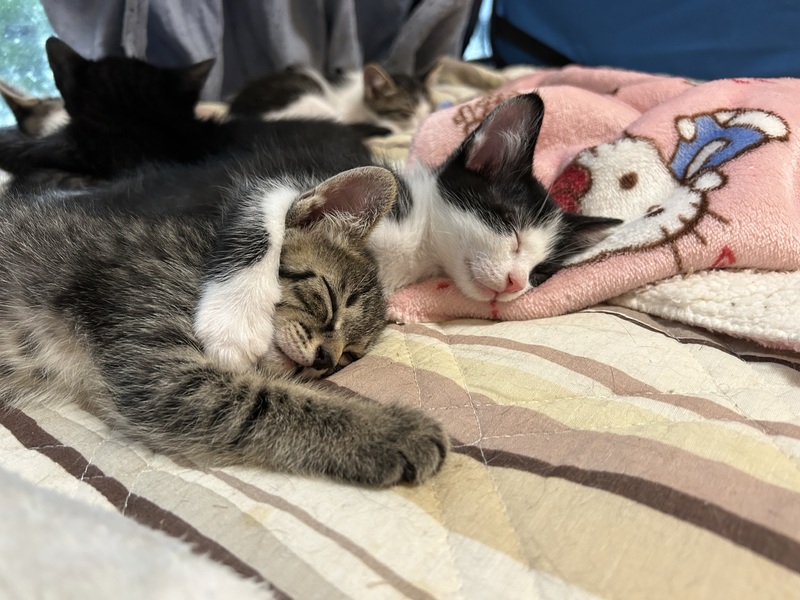 | 里親募集する理由 | 3月の初め頃に怪我した猫を保護したのですが、その子が妊娠中でしたので我が家で出産させました。 子猫達は離乳しましたので里親さんを募集させていただきます。 |