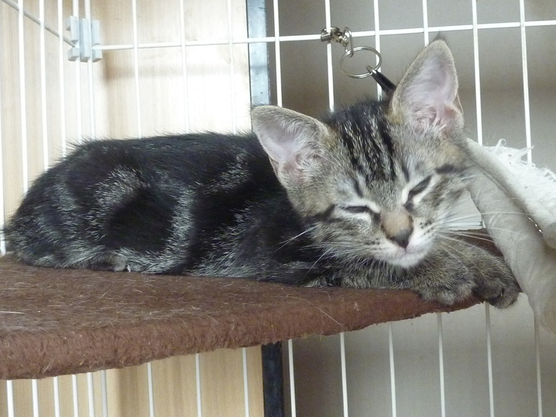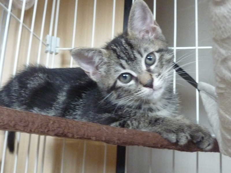 | 特徴(性格など) | 仮の名前は「キウイ」 アメリカンショートヘアのような柄のキジトラ とても元気で健康面に問題ありません ちょっとこわがりで病院の診察台に乗せるとブルブルふるえます |