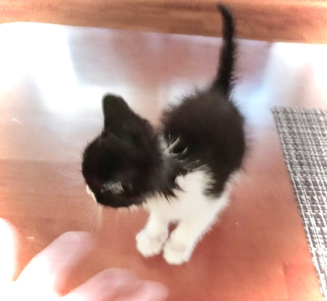 | 特徴(性格など) | 白と黒のハチワレ 天真爛漫で、一生懸命で健気な子です。 今は離乳食を与えています。 よく食べ、よく飲んで、元気です。 トイレも、猫砂でしてくれます。 ノミダニ駆除済み シャンプー済み |