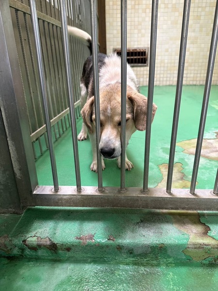 | 特徴(性格など) | ♡誰にでもフレンドリーなとっても可愛い性格花丸なビーグル男の子ฅ•ﻌ•ฅ お座り、お手を知っています。推定になりますがまだ若そうで5歳前後位?体重は10キロ未満位に見受けられますฅ•ﻌ•ฅ ◎真菌や疥癬ではありませんがノミダニによる皮膚炎で背中に脱毛があり、痒がってはいませんがマダラになっています( ; ; ) とても人懐こくて無邪気な愛嬌抜群の性格花丸君です♡ フレンドリーで誰が何処を触っても大丈夫。 尻尾フリフリで撫でて〜と擦り寄って甘えてきて本当に可愛いです(^^) 無駄吠えもしません。他犬にはあまり興味を示さずとにかく人が好きで、無理もありませんが寂しくてかまってほしくて、こっちに来てよ〜と人を呼んで吠えたりはします。 ◎今は毎日2回、栄養バッチリの高品質なプレミアムフードのカナガンとデビフ缶詰を食べています。 綺麗にブラッシング、シャンプーをして栄養をつけたらもっと凛々しい美犬クンになる事でしょう(^O^)/ 優しい職員さん方が怖くないよ、今度こそは幸せになれます様にと毎日触れ合いながら、一生懸命にお世話してくださっています。 職員さんが連れ出してくれるお散歩も、嬉しくて楽しそう♪力もあり出だしはグイグイと引っ張りますが興奮がおさまれば段々と落ち着いてお散歩出来ますし小柄なので問題無く制御出来る程度です? ※ですが、急な物音や知らない場所にビックリして怖がって、咄嗟に逃げようとする可能性も大いにあり得る事だと思いますし、その時の力、引きの強さも想定し、突然の走り出しや高い塀や壁・柵の飛び越え・急な方向転換や首を振って後退りからの首輪抜け、胴輪抜けにはご用心です!! まだ呼び戻しも覚えていないので、もし逃がしてしまったらピューっと走って行ってしまうタイプかもしれません!(>_<) もし逃がしたらもう捕まえられない!というようにお考えくださいm(_ _)m ※繰り返しになりますがどんな子であっても、慣れてきても、常に、脱走・逃走には充分な注意と最大限の配慮をお願いしております! この子のペースや体力をみながら、躾や毎日朝晩のお散歩など、必要な運動の時間をしっかり取ることの出来るご家庭、 譲渡後に早急な病院受診が可能なご家庭を希望しておりますm(_ _)m 人間が焦らずにゆっくり見守りながら、愛情を持って接し、しっかりとお散歩にも連れ出して行けば、この子はきっと新しい家庭に馴染んでいけると、本当は思い切り甘えて遊んでほしいのだと思います。 辛かった過去があるという点も踏まえ、人は怖くないんだよと、ずっと人を信じてくれる様に、広い心でドンとこい^_^と仰って頂ける方、この子をこの先も尻尾フリフリ♪ニコニコの笑顔にしてくださる方、いらっしゃいませんか? どうぞ宜しくお願い申し上げますm(_ _)m ♡今後の健康の為にも、引き続き良質なフードを与える事が可能な方。 ⭐️必ず室内飼育で、譲渡後速やかに病院受診、健康診断、(血液検査、尿便検査、ノミダニ・フィラリア予防や爪切り、シャンプー等)混合ワクチン、去勢手術をする事が可能な、なるべくお留守番が少ない、沢山優しくスキンシップやコミュニケーションで触れ合っていただけるご家庭。 ⭐️ フィラリア予防実績、混合ワクチン、狂犬病予防接種歴の有無も不明です。 フィラリア陽性の可能性も有り得る事となります(>_<) ⭐️室内でのトイレの躾も1からとなります。 未去勢で片足を上げて排尿します。 何かと手がかかり大変ですが(広めのL字型 トイレスペースやペットシート、マナーベルトを用意など)覚悟と根気・理解で受け入れて下さる方m(_ _)m ※譲渡後はお早めの健康診断、去勢手術、その際に歯石が有れば除去も一緒にお願いしますm(_ _)m ⭐️出来れば中型〜大型犬の飼育経験があり自信のある方。 叩いたりせず愛情を持って接することが出来る方。 ⭐️躾、毎日朝晩のお散歩や運動、スキンシップやコミュニケーションに充分時間をあてられる方。 今後場合により、トレーナーさんに依頼やトレーニング教室等も視野に入れて犬の為にも、里親様ご家族の為にも、しっかり学びながら向き合い考え、対応してくださる方。 何卒宜しくお願い致しますm(_ _)m ⭐️吠えても大丈夫なご家庭。 以上の点を踏まえ、この子の置かれている状況、寂しかった、傷ついているであろう心をご理解の上、全て受け入れ、寄り添いながら愛情を注いでくださるご家庭で可愛がっていただきたいと願っております。 保健所収容された全ての子達は身勝手な人間による被害者であり、何も悪くありません( ; ; ) 家族の一員として生涯大切にしてくださる優しいご家庭とのご縁が結ばれ、お散歩から戻っても嫌な檻の中では無い、家族の皆さんとずっと一緒に居られるお家、厳しい暑さや寒さにも、もう安心して快適に過ごせるお家が見つかりますように☆⭐︎♡♡ この子は今まで人間を信じ、人間と過ごしてきた事がある筈です。 1日も早く温かな愛情を目一杯注がれながら