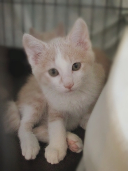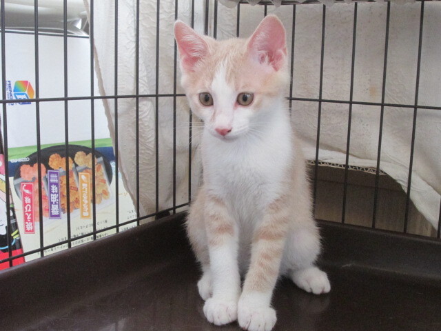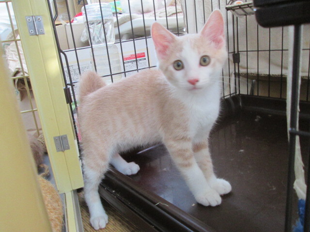| 特徴(性格など) | 仮名:成田くん 月齢:生後3ヶ月 (推定2023年4月12日頃生まれ) 性別:男の子 色柄:クリーム茶白 短めのカギしっぽ キレイなクリーム色の茶白柄で、ガッチリした骨格の男の子らしい体型の持ち主。 ちょっぴり困り顔な所も可愛らしいです。 最初は人見知りしますが、慣れるとゴロゴロ。 猫じゃらしで誘うととっても元気よく遊びます。 まだ人を怖がる事がありますが、過去に似たような子猫を保護した経験から、新しい環境に慣れて落ち着いた頃にはとっても甘えん坊な猫になると思います。 最初はケージ内で少しずつコミュニケーションを取りながら馴らして下さいますと、比較的早く馴染みやすいかと思います。 遊ぶ事が大好きですので、猫じゃらしで一緒に遊びながら親睦を深めてください。 怖がりな一面がありますので、未就学のお子さんのいらっしゃるご家族よりも、落ち着いたご家族が合うのではないかと感じています。 また、先住猫さんのいるお宅よりも、成田くんだけに向き合ってくださるお宅が合うのではないかと思います。 多頭飼育をご希望の場合は、成田くんが落ち着いて暮らせるようになった半年後以降に後輩の子猫をお迎えなさると上手くいくのではないかと思います。 ちょっぴり臆病な成田くんをご理解いただいた上で、気長に優しく接して下さるご家族とのご縁をお待ちしています。 ○ノミ・ダニ:駆除済み (駆虫薬レボリューション済み) ○糞便検査:2回済み (2回とも問題なし) ○猫エイズ(FIV):陰性 ※母猫検査 ○猫白血病(FeLV):陰性 ※母猫検査 ○ワクチン接種:2回済み ○去勢手術:未手術 ○マイクロチップ:未装着 |