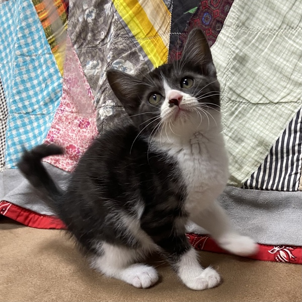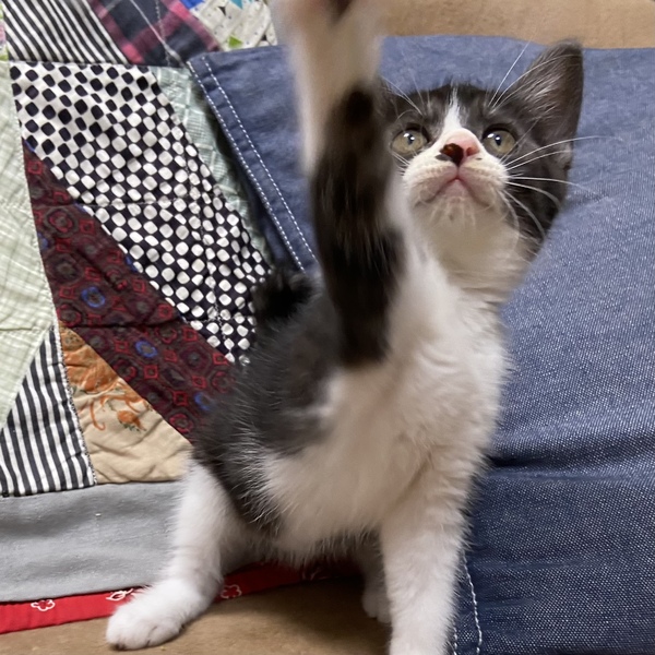 | 特徴(性格など) | おてんばで可愛いハチワレの女の子です。 妹の真珠(写真2枚目)に比べ姉のパールは黒多めです。 なんといっても眉毛のような目の上の白い模様が超!可愛くて個性的!唯一無二の個性です。 とぼけたお顔と体の白黒の色の入り方がとっても可愛くて、愛おしいです。 性格はおてんばで遊ぶの大好き!走り回るの大好き!子猫なので、時期に落ち着くと思います。 でもやっぱり甘えん坊で、抱っこすると堪能してくれます。 まだ子猫なのでこれから性格もまた変わるとは思いますが、いまのところはおてんばなくせに少しびびりなところもあり、でも1分ですぐに慣れていつもの調子に戻るちゃっかりもの。笑 たどたどしく動く様が可愛いですよ。 少しひょうきんなびっくりフェイスもチャームポイントです。 ご飯の食べもよく、なでなでも抱っこも大好き。 真珠と仲良く寝たり遊んだりとハッピーな子猫です。 夜鳴きもせず手があまりかからない子猫、と言う印象です。 繊細すぎない性格なので小学生以上のお子さんがいるご家庭大丈夫です。 また犬達とも過ごしていますので、攻撃性がない犬との多頭も大丈夫です。 猫も同じく、先住さんが子猫を受け入れられる性格なら大丈夫です。 子猫なのであまりにもお留守番が多い場合は難しいです。 あまりにも可愛い子猫期なので、この可愛さをぜひ堪能してほしい!と思います。 |
