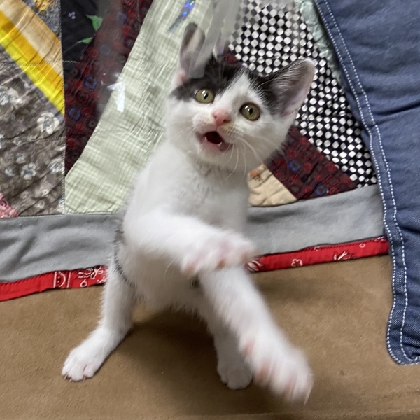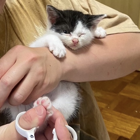 | 特徴(性格など) | 甘々な性格のハチワレの女の子です。 お姉ちゃんのパール(写真2枚目)に比べ妹の真珠は白多めです。 とぼけたお顔と白黒の色の入り方がとっても可愛くて、愛おしいです。 性格は甘えん坊で、抱っこするだけで自動に喉がゴロゴロ鳴ってしまいます。 まだ子猫なのでこれから性格もまた変わるとは思いますが、いまのところは穏やかでのんびりさん、でも遊ぶ時は思いっきり遊びます。 あまり怖がりでない、というかぼーっとしていてそこも可愛いです。 ご飯の食べもよく、なでなでも抱っこも大好き。 パールと仲良く寝たり遊んだりとハッピーな子猫です。 夜鳴きもせず手があまりかからない子猫、と言う印象です。 繊細すぎない性格なので小学生以上のお子さんがいるご家庭大丈夫です。 また犬達とも過ごしていますので、攻撃性がない犬との多頭も大丈夫です。 猫も同じく、先住さんが子猫を受け入れられる性格なら大丈夫です。 子猫なのであまりにもお留守番が多い場合は難しいです。 あまりにも可愛い子猫期なので、この可愛さをぜひ堪能してほしい!と思います。 |