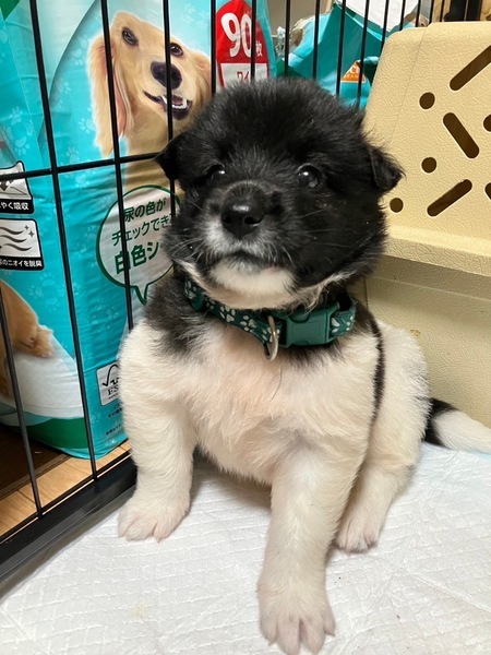 | 特徴(性格など) | 仮名:ぽん太 生まれ:2023年5月上旬 特徴:白黒の牛模様、もふもふ 性格 人懐っこい甘えん坊です。 お腹が空いた時はクンクン言いますが、 静かに1人遊びをしたり、クレートの中で寝ていたり。 しかし、だんだん外の世界に興味も出てきました。 現在甘噛み、大好きです。 これから成長につれて運動量は必要になりますので、 しっかり運動させてあげることができ、適切なしつけができ、 幼い間はお留守番時間が短いご家族を希望します。 健康状態 良好 体重:2.6kg (6/17現在) パルボ検査 陰性 ノミダニ駆除 済み ワクチン1回目 済み 今後の医療措置 ワクチン2回目、3回目 狂犬病ワクチン マイクロチップ装着 去勢手術 |