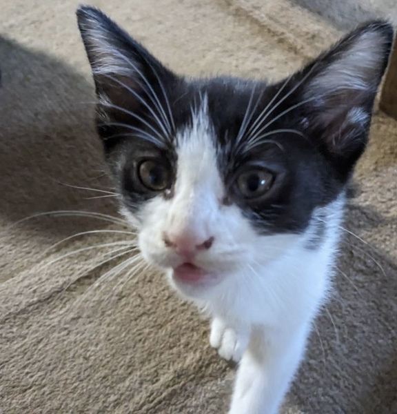| 特徴(性格など) | ・ハチワレちゃんで、兄弟の中では一番体の大きい子です! ・よく食べよく遊びよく眠ります! |