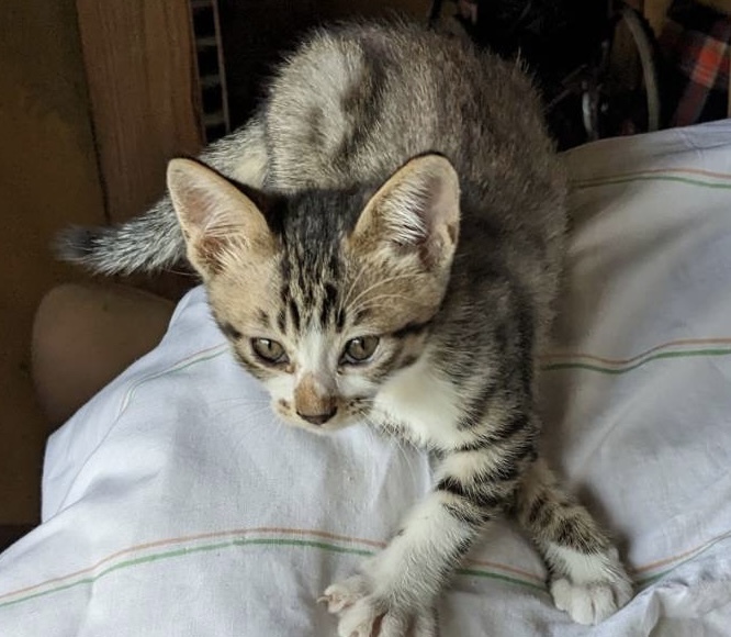| 特徴(性格など) | ・兄弟の中で一番小柄ですが、とっても元気いっぱいです! ・人馴れしていて、人の足によく登ってきます。 ・鳴いてご飯もおねだりしてきます。笑 |