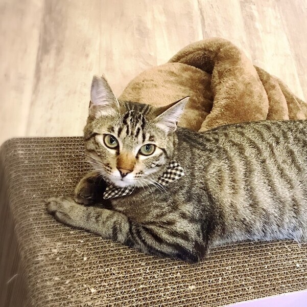 | 特徴(性格など) | キジ エイズ陰性 白血病陰性 ノミダニ駆除済、検便済 オモチャ大好きで、元気でとても可愛いです。 猫も大好き、人間も大好きです。 食いしん坊なのでご注意ください♪ カフェに小さい仔猫が入所した時は、下の子の面倒を見るとても優しいところがあります。 保護猫とカフェ『ニャンとぴあ』にいますので、是非直接会ってください。 https://nyann-topia.amebaownd.com/ |