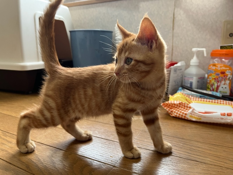| 特徴(性格など) | 【見た目】 綺麗な茶トラです。 毛は硬めで、尻尾は長くてまっすぐ。 お顔の感じはのんびりや?タレ目?で、ぽやっとしてます。 体重900g 【性格】 人馴れ抜群! すごく甘えん坊。人にすぐ近寄ってきます。 撫でるとすぐに尻尾を立ててゴロゴロ〜と甘えます。 とても可愛い子です(*´`*) 抱っこもできます。 人がベッドで寝ていると、背中によじ登ってきます。 やんちゃすぎず、そこまで手がかからない子です。 トイレも完璧。 猫同士も上手に遊べます。 同じく保護して里親募集中の男の子と、走り回って遊んでます。 2匹で一緒のお家にいけたら一番いいのですが…(*´`*) 【健康状態】 ・鼻水が出ており、投薬治療中です。 ・ノミダニ駆除済み ・その他白血病等の検査は、子猫への負担が大きいことと、まだ幼いため正しい検査結果が出ないことから行っておりません。 |