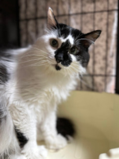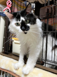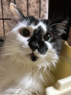 | 特徴(性格など) | 仮名を『サフラン』と言います。 黒白で長毛の女の仔です。 飼養放棄で保健所に収容されました。 長毛でフサフサ。 お鼻模様が素敵で個性的な、インパクトのある容姿の持ち主です。 飼い主さんと暮らしていましたが、飼養放棄によって保健所に引き取られたサフランは、まだ不安でいっぱいです。 それでも少しずつ安心をわかってきてくれて、塞ぎがちだった毎日に徐々に変化が見られるようになりました。 ご飯はしっかり食べてくれるのでその点は安心です。 サフランのペースで見守りつつも、スキンシップを図って参りましたが、撫でられるのは満更でもないようで、やめようとするとゴロゴロ言いながら催促したり、爪切りもさせてくれるようになってきました。 随分と表情が柔らかくなってきまして、この先は未来のご家族に託した方が、ぐんと距離が縮まるのではないかなと思っています♡ 我こそは….!というような、勇ましく猫愛に溢れています方に届きますよう、発展途上のサフランではありますが里親募集を開始いたしました。 シャー!は出ますが、はじめましてー。や、どうもー。といった挨拶のようなもの。 そう受け止めてもらえたら、見方接し方が変わってくると思いませんか?^ ^ まだツン多めでも人間の愛情スパイスで、サフランに変化がみられる過程を、じっくりと優しく温かく見守っていただけます方にお願いしたいです。 ぜひぜひサフランに会いに来てくださいね。 【医療処置情報】これから実施のも含まれます *健康チェック *3種混合ワクチン接種 (年1回定期的にしております。詳細はお見合い時にお知らせいたします) *ウイルス検査実施(FIV.FeLV共に陰性) *検便実施 *駆虫薬投与(レボリューション、ドロンタール) *マイクロチップ装着 *不妊・去勢手術 |
