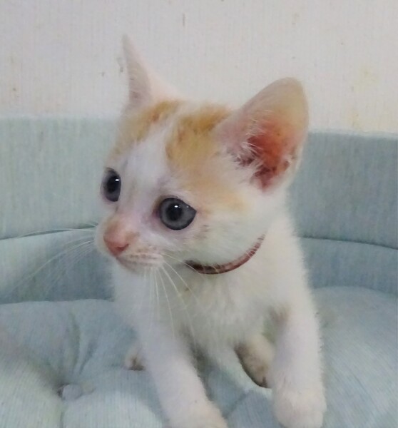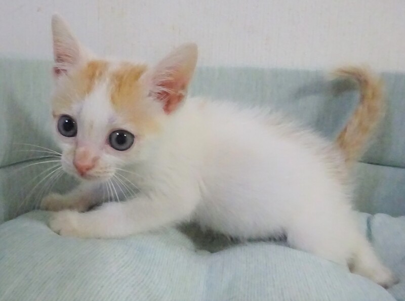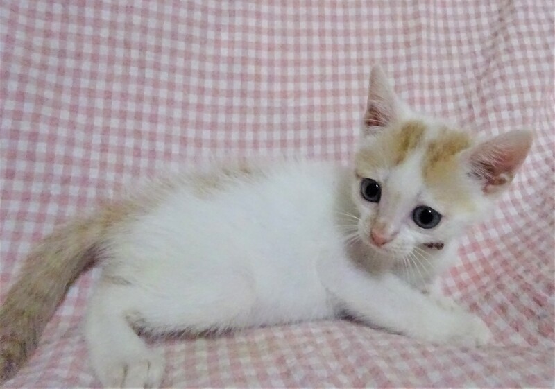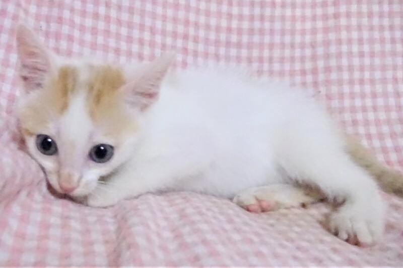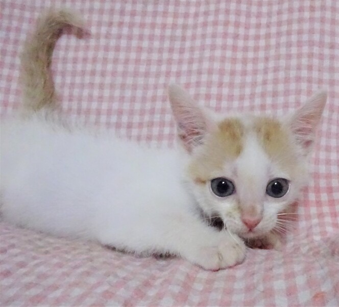 | 特徴(性格など) | 仮名: 剣(つるぎ)くん、 オス 毛色: 白に近い白茶、尻尾長い 性格: まだ個性ははっきりしませんが、人には馴れています。 人がケージに近づくと寄って来てスリスリ甘えてくれます。 保護時は未熟でしたので、まだ大きくないですが、元気です。 ご飯も少食ですが、毎食きちんと食べます。兄弟のほたかくんとは仲良しで追いかけっこしたり、プロレスしたりしています。2匹とも、大人しい方であまり鳴きませんし、大騒ぎはしません。 大人猫とはまだ付き合いがありませんので、うまくつきあえるか解っていません。 威嚇なく抱っこ出来、薬も爪切りも大丈夫です。 子猫ですから、お届けは車で1時間圏内でお願いします。 検便済 駆虫済 3種混合ワクチン済 猫エイズ・白血病ウィルス検査はともに陰性 |