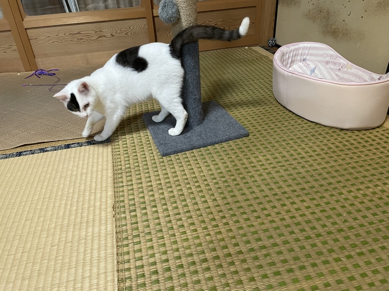 | 特徴(性格など) | とても愛らしい 人が大好きな子です。 頭がフラフラしている為 少し落ち着きがなさそうな感じがしますが 撫でられるのがとても好きな 小柄の女の子。 誰にでも愛想をふりまく子ですが、急に触るとびっくりとし逃げ回ります。 が、落ち着くとベタベタに甘えてきてくれます。 毛色が 白黒だけでなく 焦茶がはいっており尻尾はまっすぐ長く 焦茶トラがらの変わった柄になってます。 頭は揺れていますが 生活するのには まったく問題はありません。 ただ 耳は全く聞こえていない事がわかりました 脳障害の子は 普通の子と比べれば大変ですが 他にこんな子はいないと思えるくらいとっても愛らしいです。 |