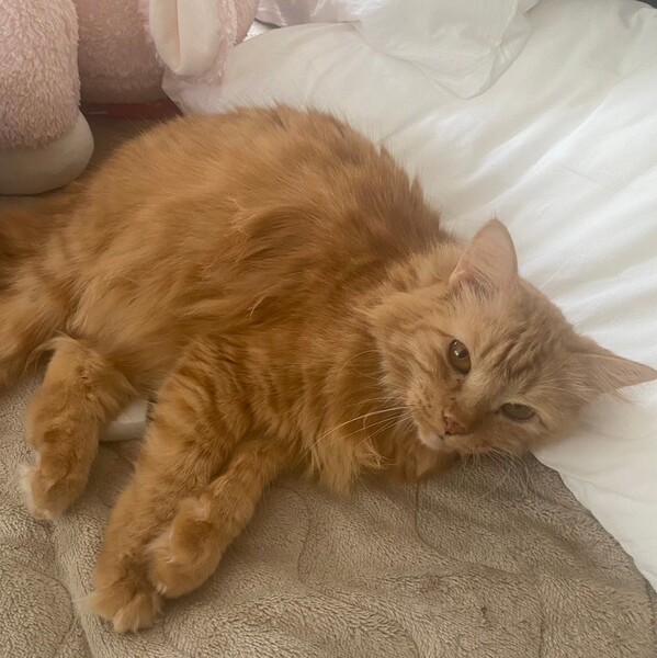 | 特徴(性格など) | 甘えん坊で人が大好きです。 抱っこはちょっと苦手ですが膝には乗ってきます。 長毛茶トラの美人さんです。 不妊手術済み、ウイルス検査(猫エイズ・猫白血病)陰性、便検査、ノミ・ダニ・内部寄生虫駆除、三種混合ワクチン接種、マイクロチップ装着 |