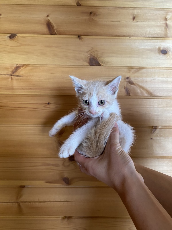 | 特徴(性格など) | 白に茶色の柄の子猫です。雄猫で甘えん坊で近づくとぐるぐる喉を鳴らして甘えてきます。 | ||