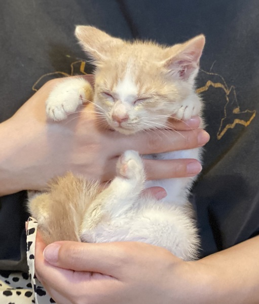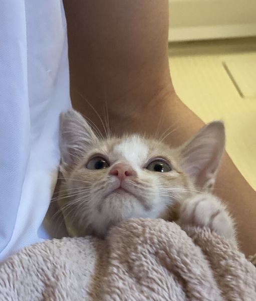 | 里親募集する理由 | 猫風邪をひき衰弱した状態で迷子になっていたのを保護しました。病院へ行き、薬を処方してもらい現在は元気になりました。生後一ヶ月くらいだと病院で言われました。大切に育てていただける方を希望します。 | ||