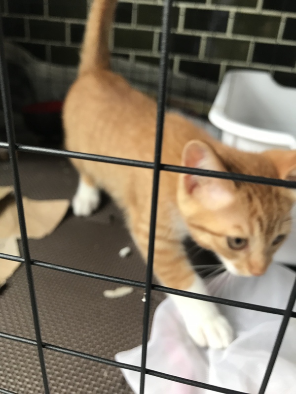 | 特徴(性格など) | 茶白 元気で人懐っこく活発な子です。ネズミのおもちゃで遊ぶのが好きです。 乳離れし、フードも食べれます。 |