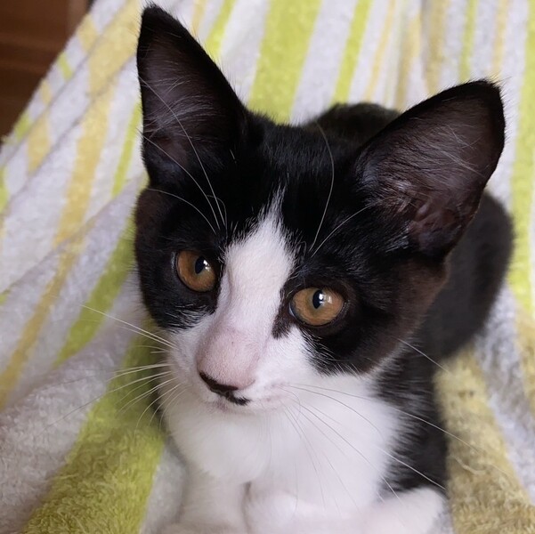 | 特徴(性格など) | 鼻のちょび髭風の模様と白のアームウォーマー&ハイソックスがチャームポイント。 人馴れ抜群で、撫でるとすぐにゴロゴロと喉を鳴らします。寝転んで居るとお腹の上に乗ってきてお昼寝を始めます。 姉妹のなをとずっと一緒にいるので、よく2人で遊びますが、ひとり遊びも得意ですし、大人猫さんとも遊べます。 ウイルス検査済 エイズ白血病共に陰性 ワクチン済 検便、駆虫済 マイクロチップ装着予定 避妊 未 (基本はこちらで避妊手術をしてからのお届けとなりますがまだ小さい為手術についてはご相談下さい。) |