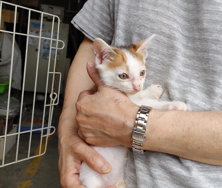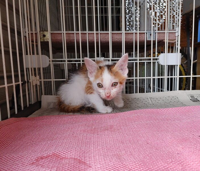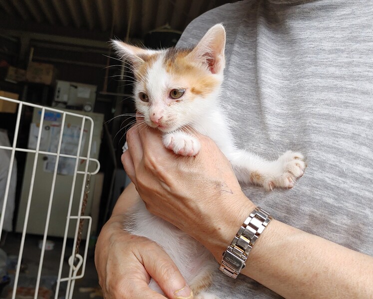 | 里親募集する理由 | 我が家に来ている野良猫が物置に産んだようで、大きなお腹が5月3日にはスッキリしていたので、この日位に出産したようです。 段ボールの中に産んでいたので、母猫が留守の時保護しました。 先住猫が居ますので、新しい飼い主様を募集しています。 |